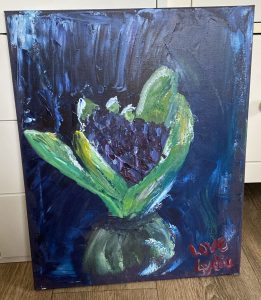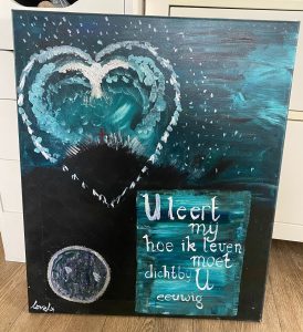 Schilderijen die hier zijn te zien, zijn allemaal door Lydia geschilderd, in diverse settingen. Met het unieke levensverhaal dat zij heeft doorgemaakt, verwerkt en verweven in deze pareltjes.