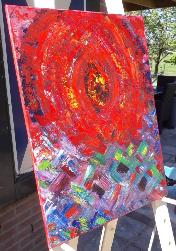 Samen met Lydia ging ik schilderen en vanaf het moment dat ik bij haar de kwast weer in de hand durfde te nemen is er zoiets moois en rijks in mezelf ontstaan: Bevrijding!